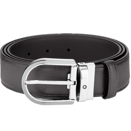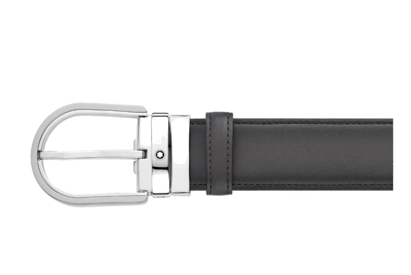 Кожаный ремень с пряжкой в форме подковы серого цвета 35 мм от магазина премиальных ручек Premium Pens в Петропавловск-Камчатске.